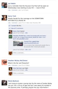 The Houston Herald’s Facebook page is a fantastic example of staying relevant, using social media as it’s intended to be used, and taking the news to the community instead of expecting them to come to you.