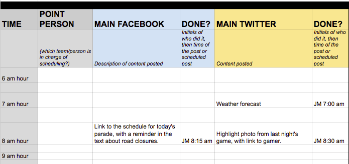 Some of us also have lots of people jumping in and out of social posting in our newsrooms. It can be tough to know who’s in charge of which stories, which hours and which days.