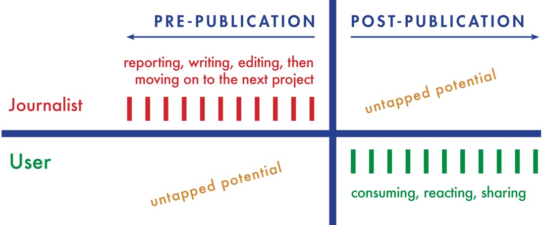 Before publication, how can/should users be involved? How can their interests, insight and expertise shape what we do? How can they contribute to conversations, and to stories?
